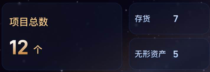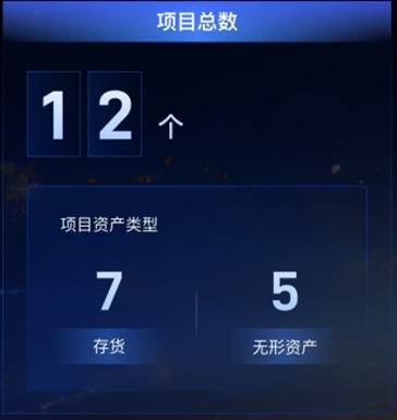 “项目总数”展示各项目资产类型的分布,包括:分类为存货的项目数量和分类为无形资产的项目数量。项目总数=分类为存货的项目数量+分类为无形资产的项目数量。