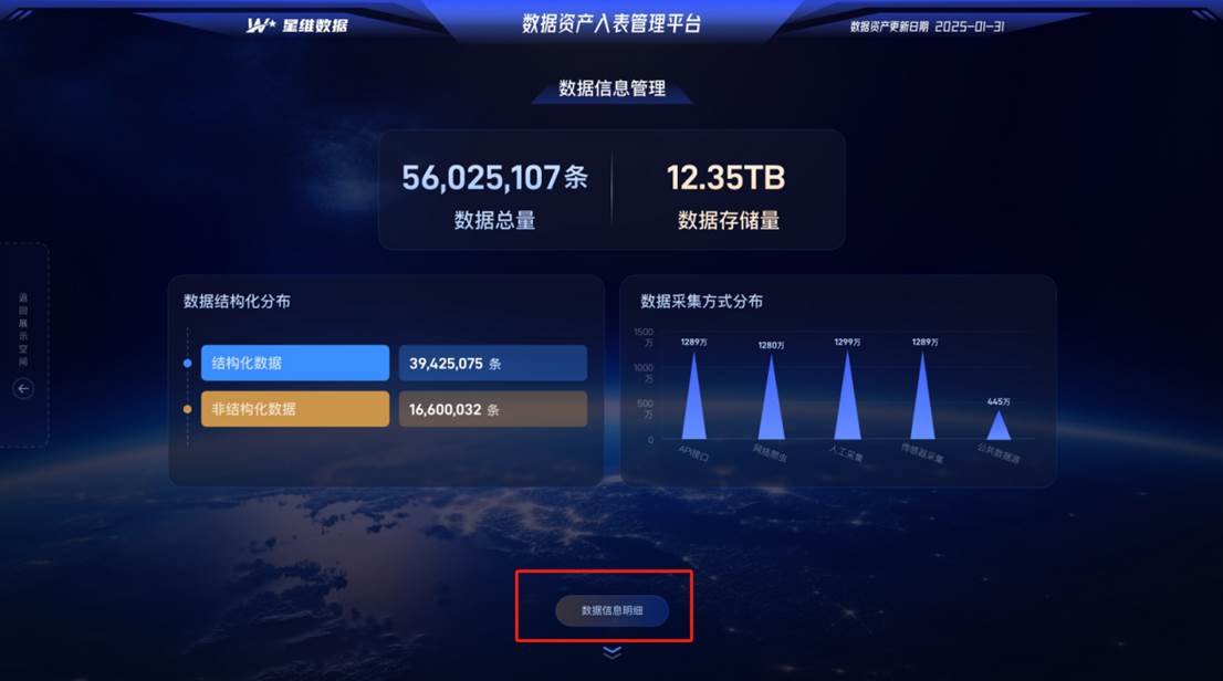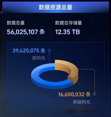 “数据资源总量”中展示了数据资源总量(条)、数据总储存量(TB)、结构化和非结构化数据量(条)的分布。