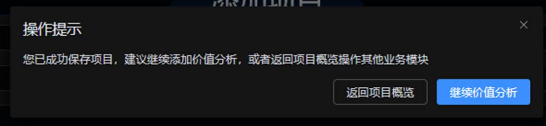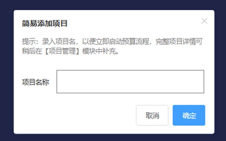 用户在“简易添加项目”窗口内填报“项目名称”,点击“确定”后,便可添加一个项目。