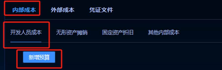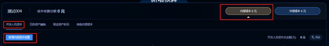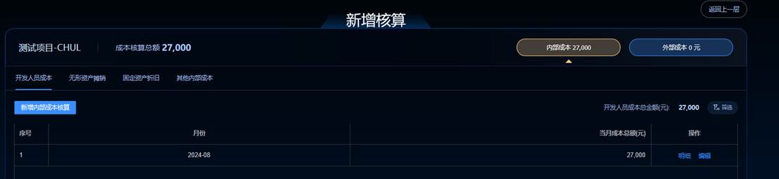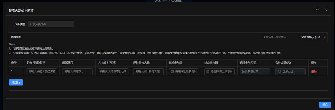 依次点击“内部成本”按钮、“开发人员成本”按钮、“新增预算”按钮后,进入“新增内部成本预算-开发人员成本”页面。