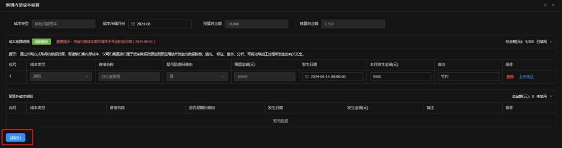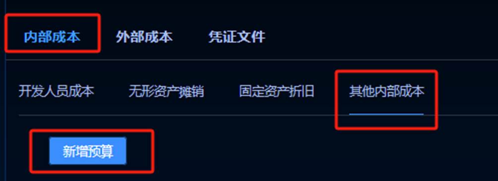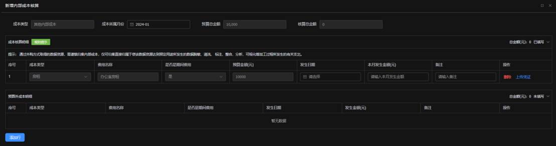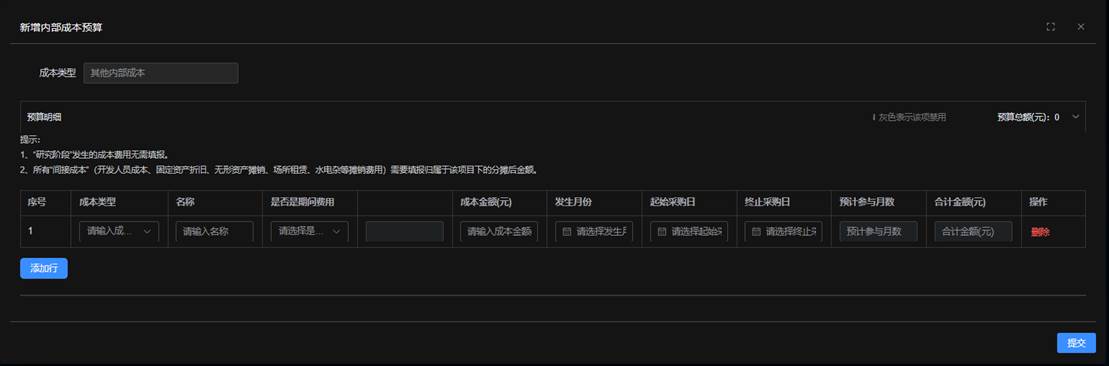 依次点击“内部成本”按钮、“其他内部成本”按钮、“新增预算”按钮后,进入“新增内部成本预算-其他内部成本”页面。