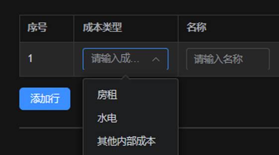 在“成本类型”下拉框中,可以选择其他内部成本的类型,比如“房租”、“水电”、“其他内部成本”。