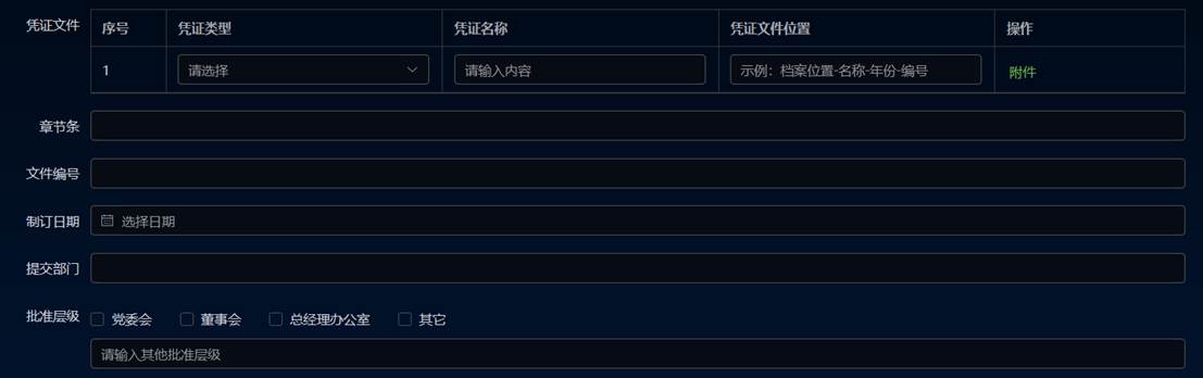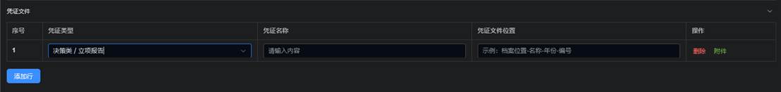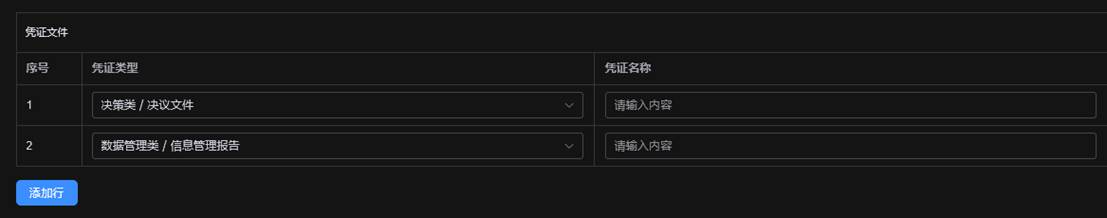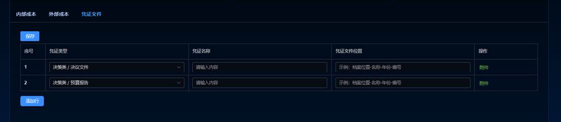 点击“凭证文件”按钮,进入凭证上传页面。可上传预算报告和相关的决策文件。之后点击“保存”按钮,进行保存。
