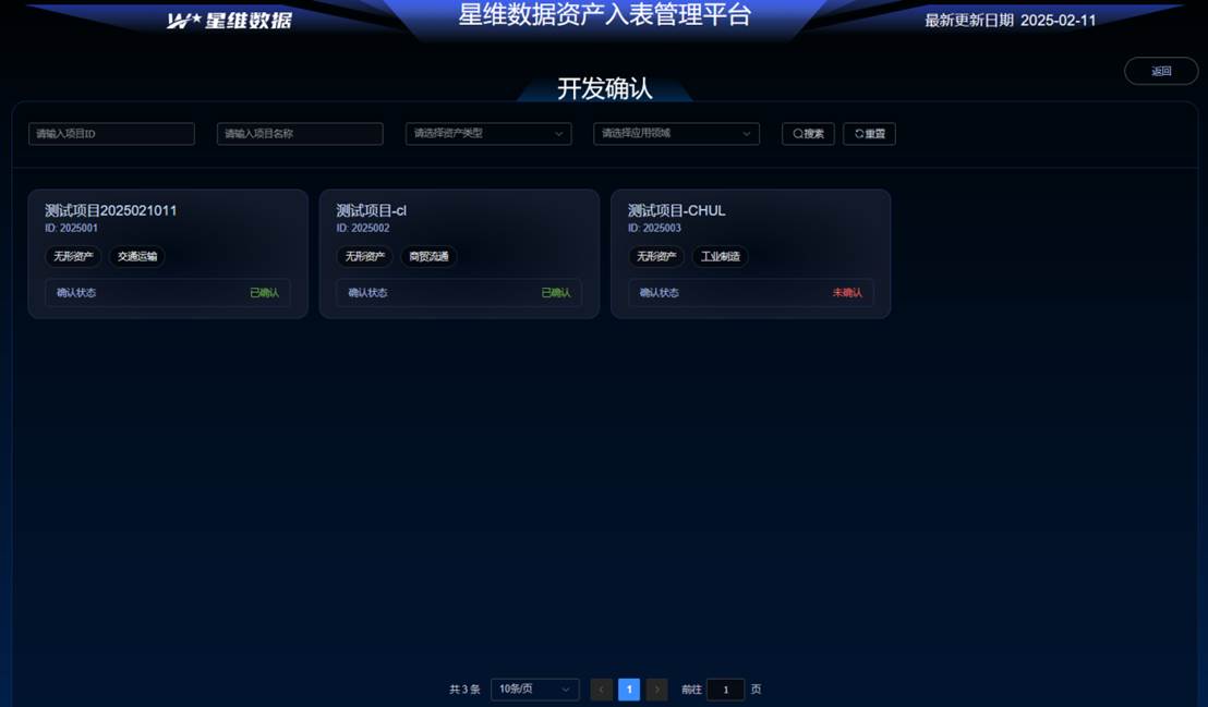 进入开发确认模块,可以查看到所有项目的清单,系统显示为各项目卡片,展示了各项目的开发确认状态。