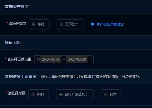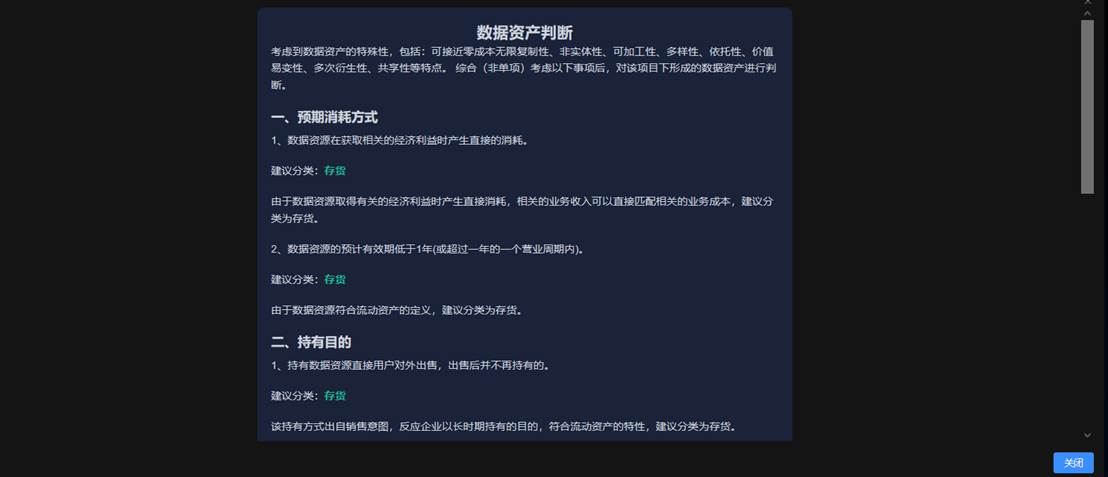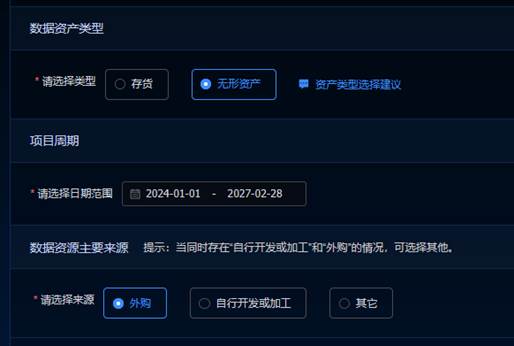 选择资产类型,可选择“存货”或“无形资产”。点击“资产类型选择建议”,查阅系统提供的“数据资产判断”指引: