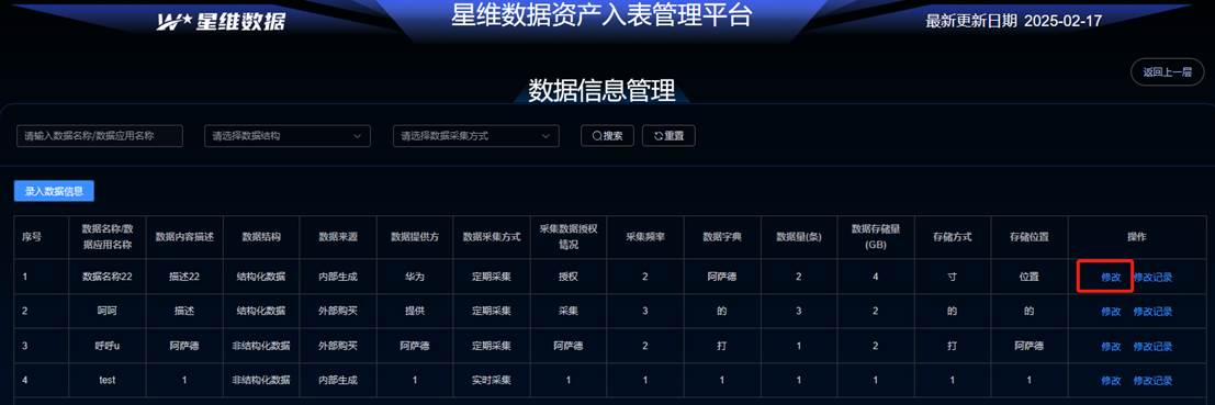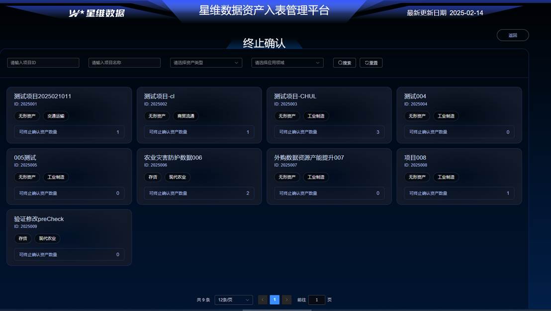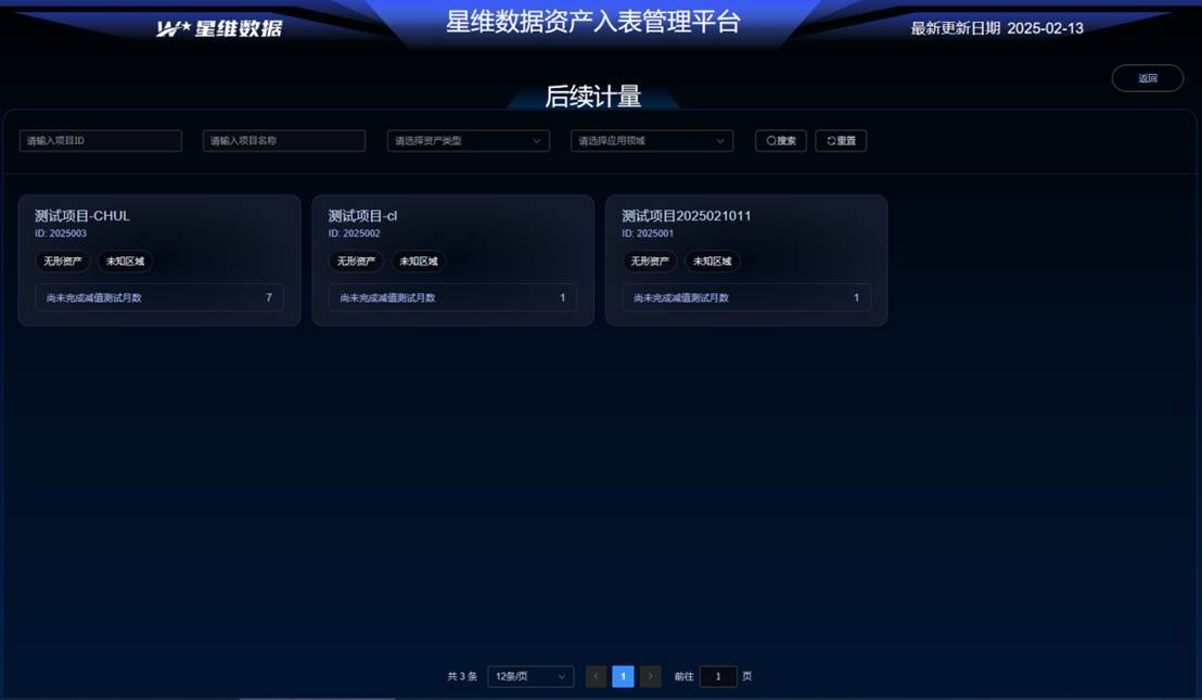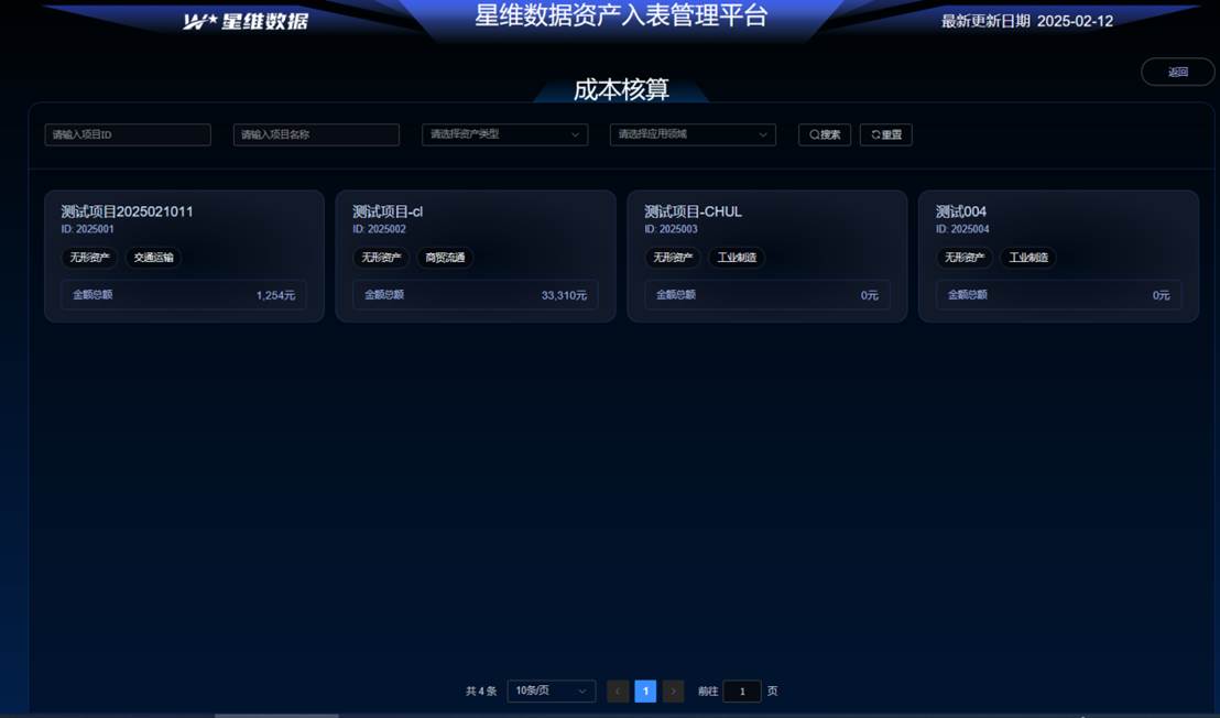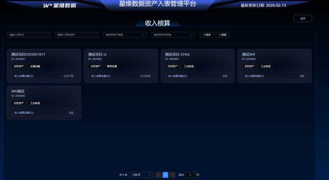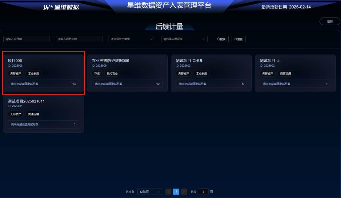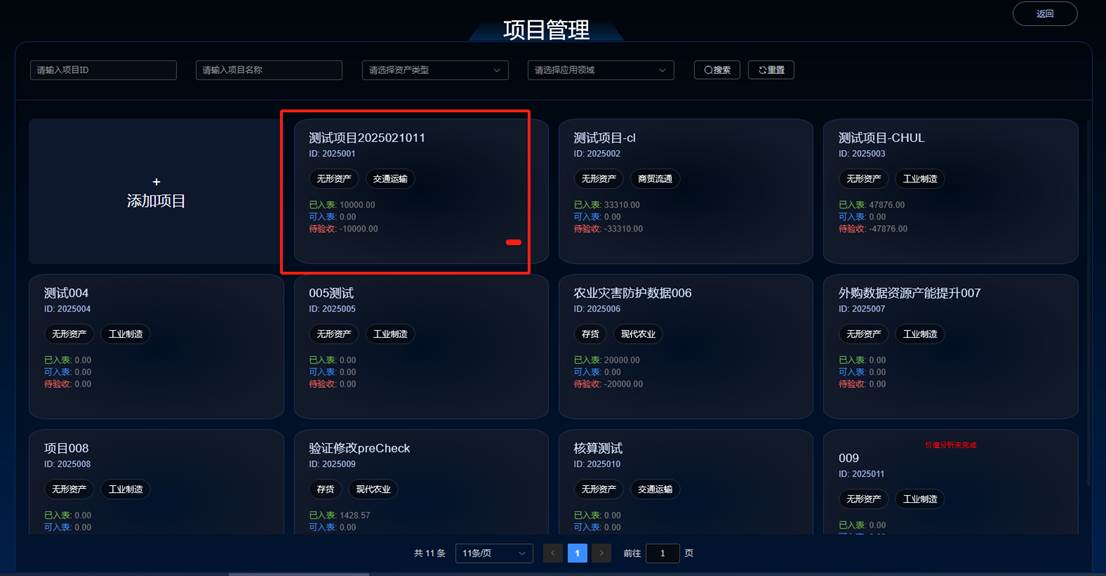 点击“管理模块”中的“数据项目”按钮进入数据项目汇总页面。