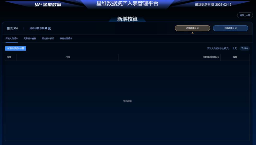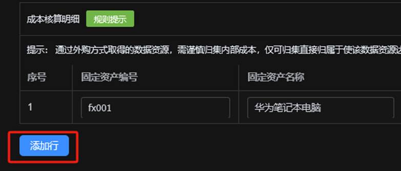 (2)如果选择时点成本,以一次性采购数据资源为例,需要填报“本次”发生的“成本金额”以及预计“发生月份”。