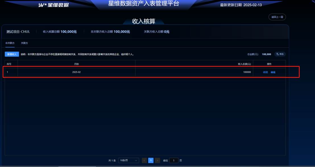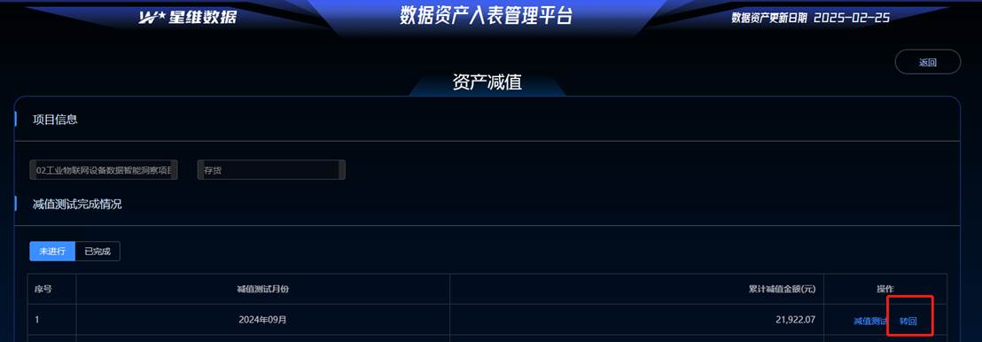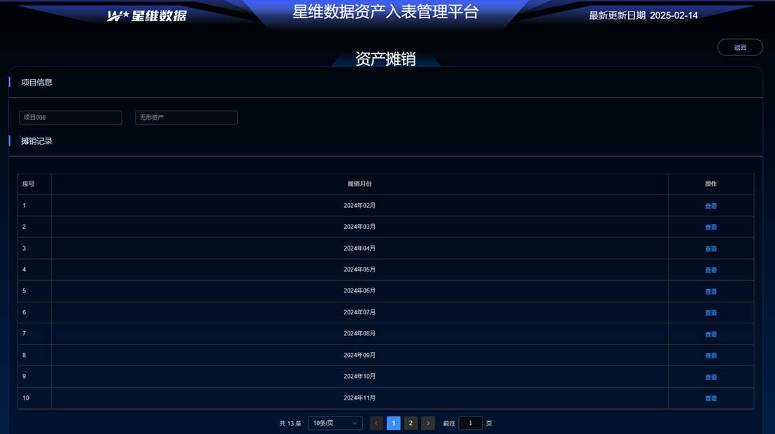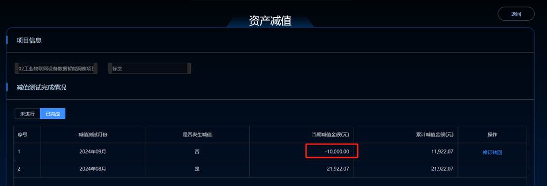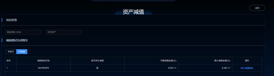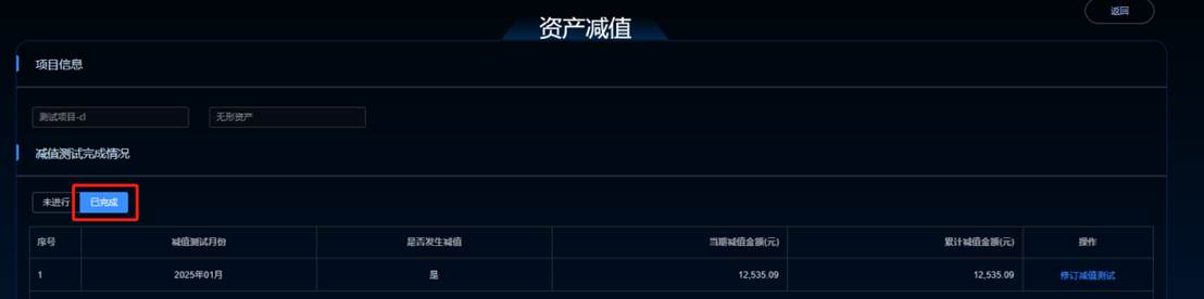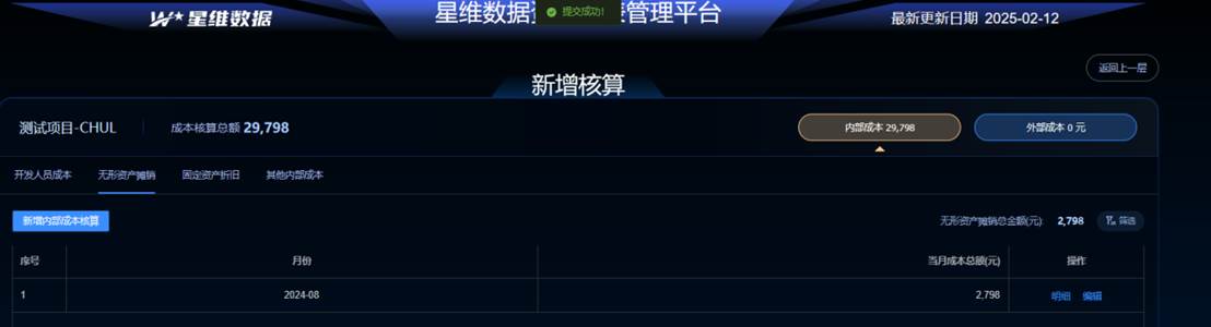 递交后返回“项目预算”页面,显示了本次无形资产摊销预算填报后的结果。