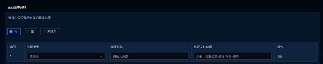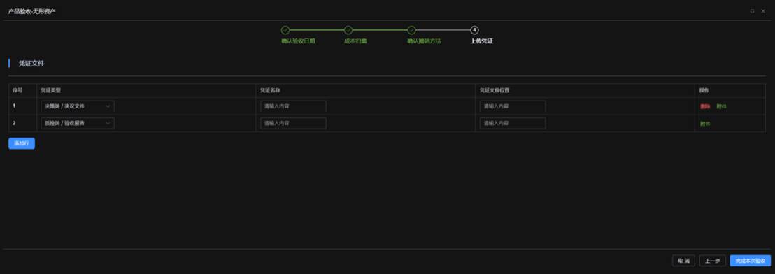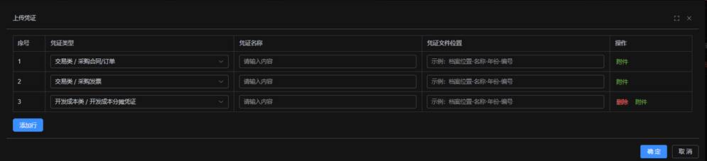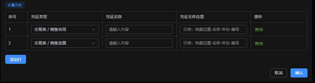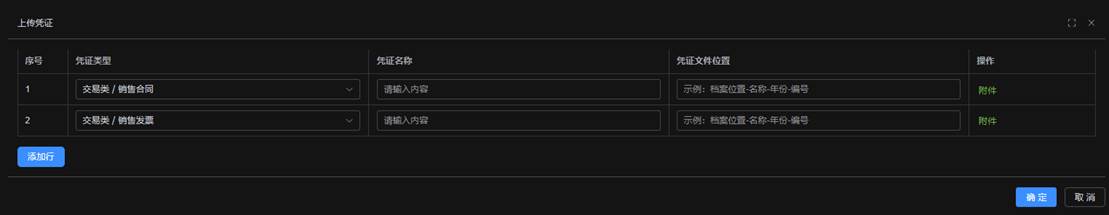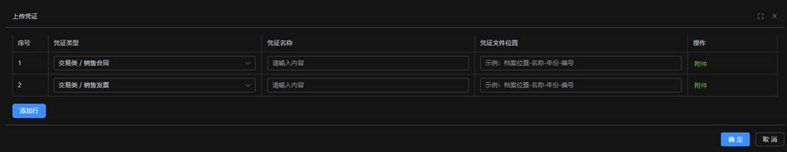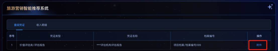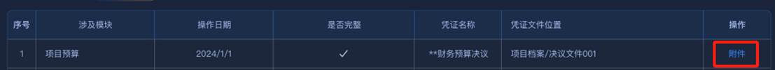 对于凭证完整的记录,系统展示“凭证名称”、“凭证文件位置”、操作栏。如存在附件,可以点击“附件”查看具体的电子凭证。