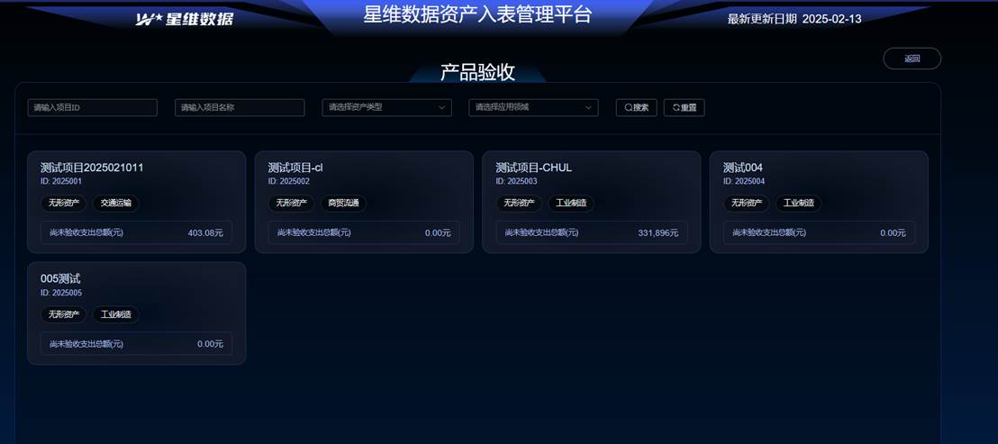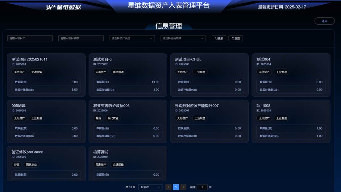 数据项目信息明细界面中,展示了各个项目的项目信息卡片。