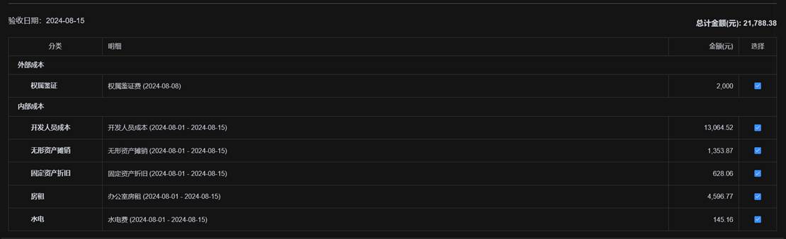 “可入表”金额:满足成本核算条件,但尚未达到验收条件的成本,以及尚未确认记录在财务账套下的核算金额。
