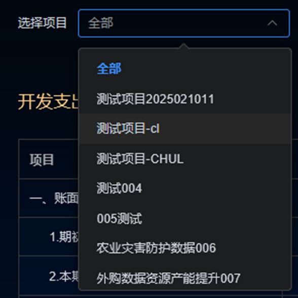 进入项目预算页面后,展示了单个项目的预算总览。具体功能包括: