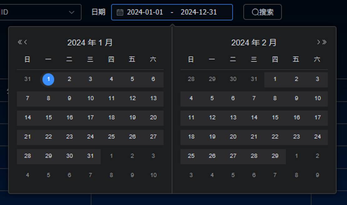 各模块中,存在一些通用的功能,比如:搜索栏、时间选择期、展示空间项目内导航栏等。本部分对以上通用功能进行详细介绍。