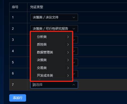 用户点击单个二级分类后(如“决议文件”),系统将展示该二级分类的凭证详情。