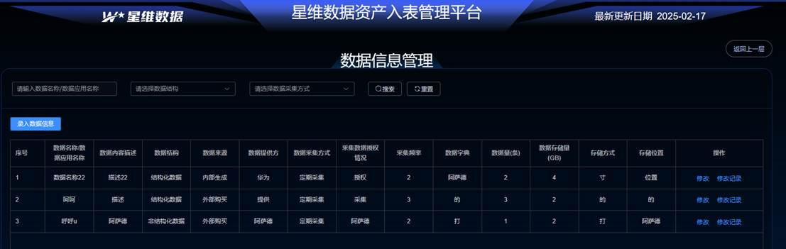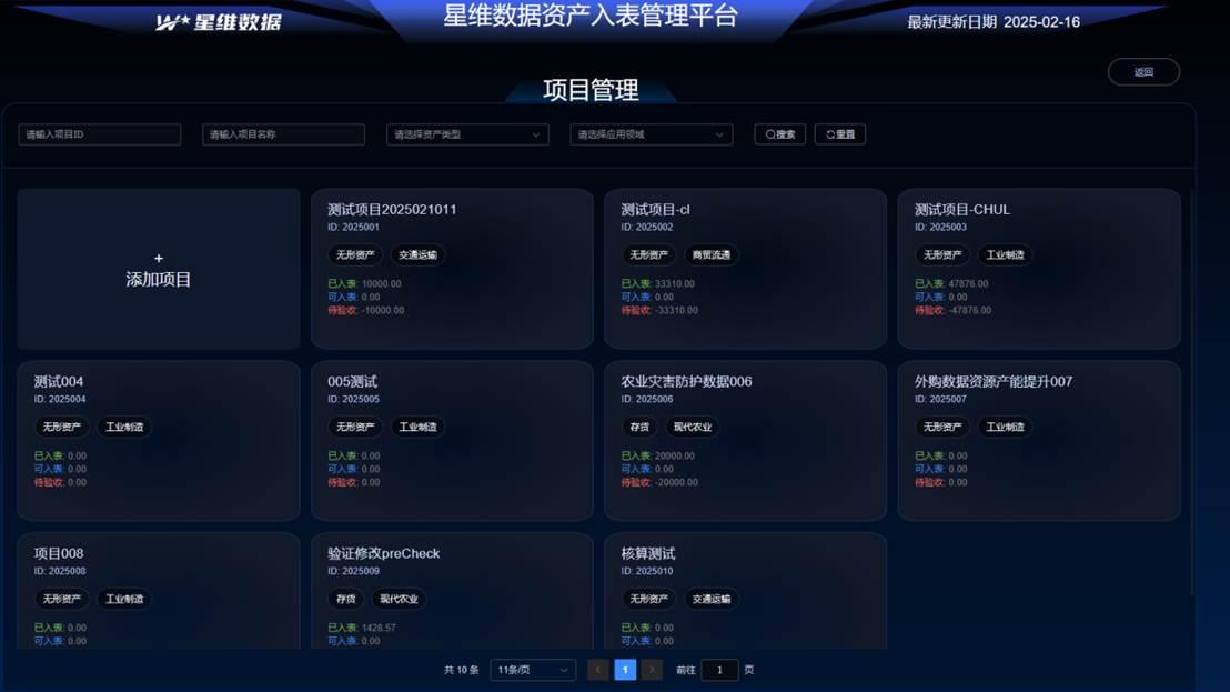 数据项目汇总页面中,展示了数据项目的汇总情况。包括如下内容: