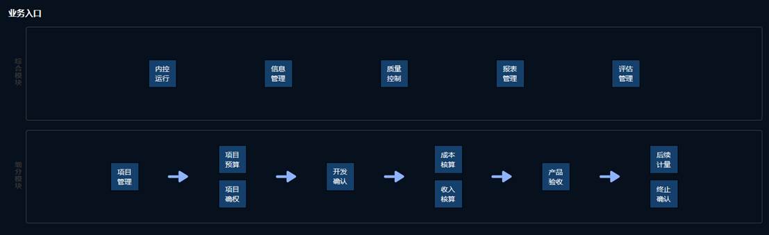 管理模块包括项目管理、内控设计、内控运行、企业质量安全、项目质量安全模块。