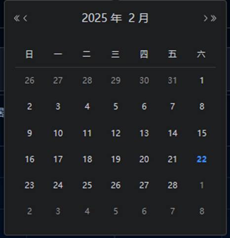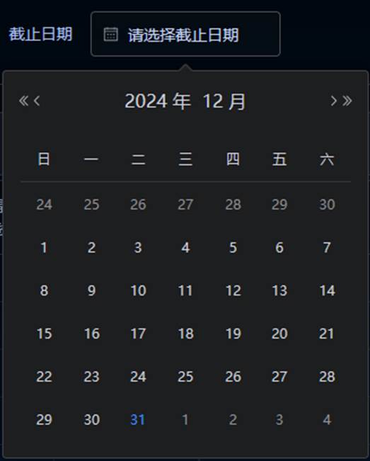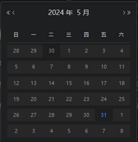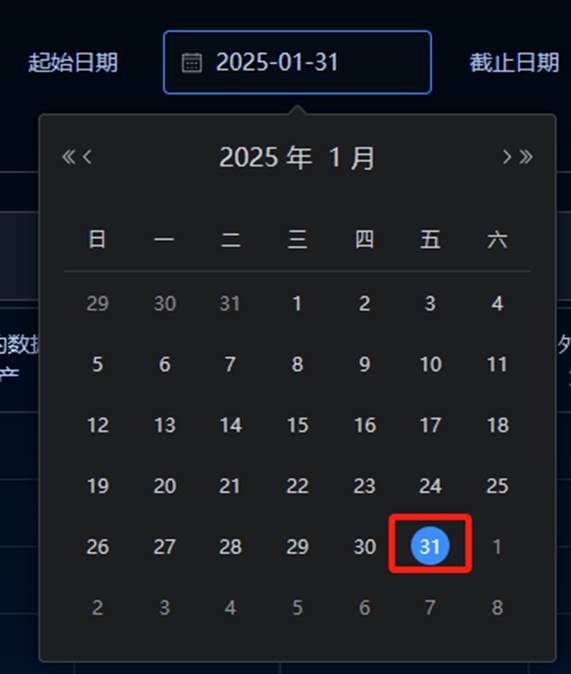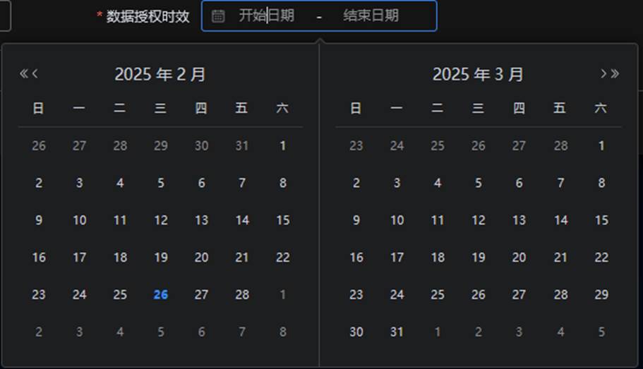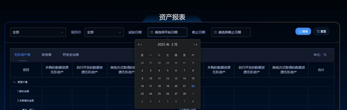 时间选择器通常出现在操作空间和展示空间中有关时间设定和检索的页面。例如上图所示的“资产报表”模块的展示空间和操作空间、“开发确认”模块的操作空间、“项目核算”的操作空间。