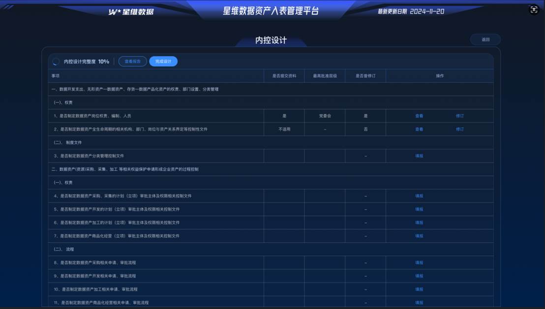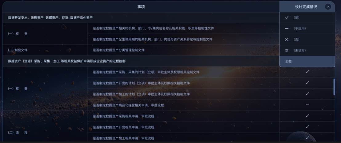 用户可以通过列表上方,总览内部控制设计完整性情况。