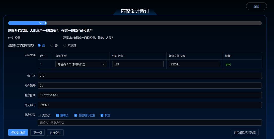 用户可以点击“查阅凭证”按钮,查阅内部控制设计的相关凭证。