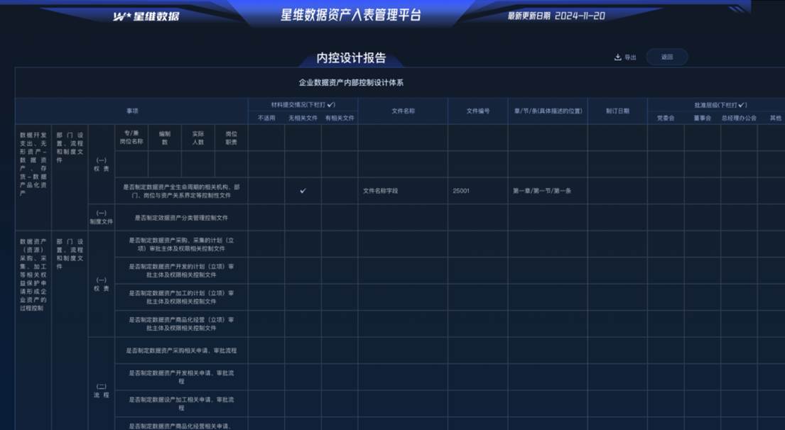 内部控制设计的详细页面展示了设计完整度和内控事项详细列表等信息。具体包括: