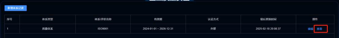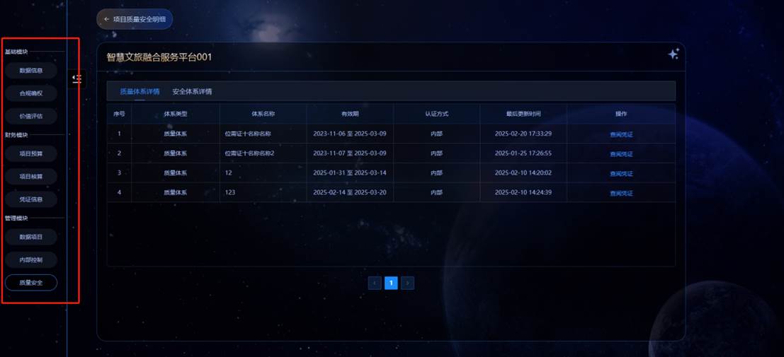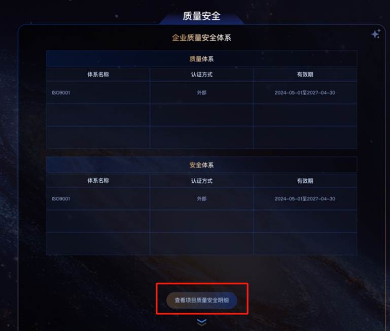 点击质量/安全体系按钮可以进入项目质量/安全体系详情页面。