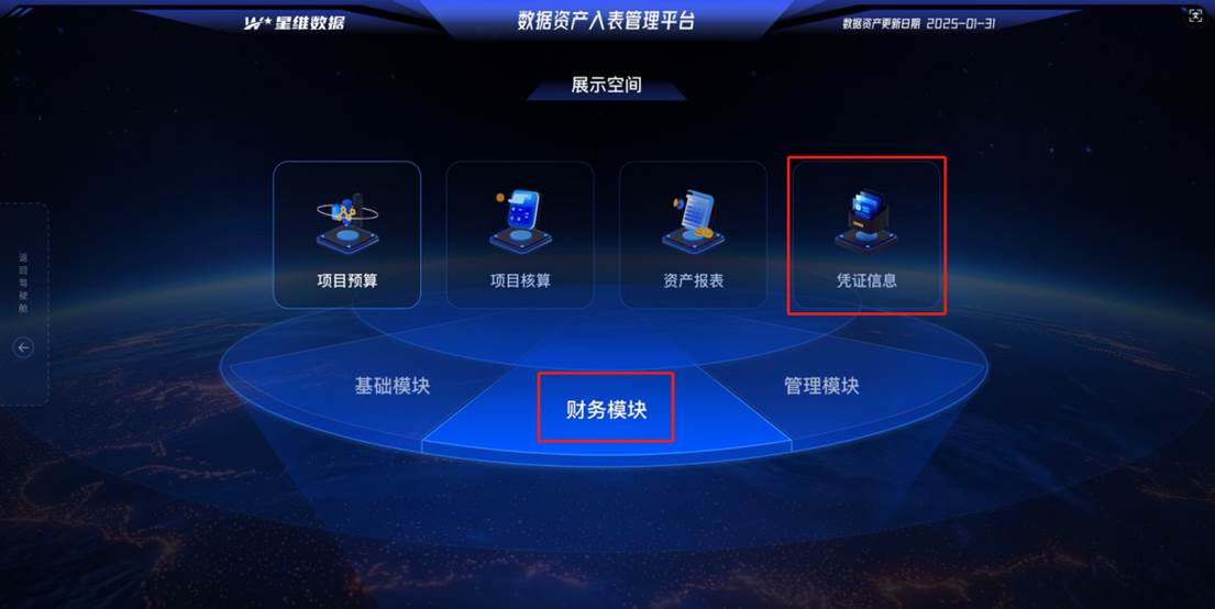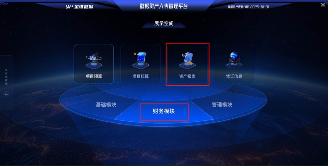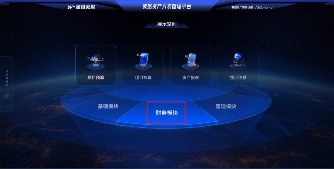 操作空间模块分为三大类型,包括财务模块、基础模块、管理模块。