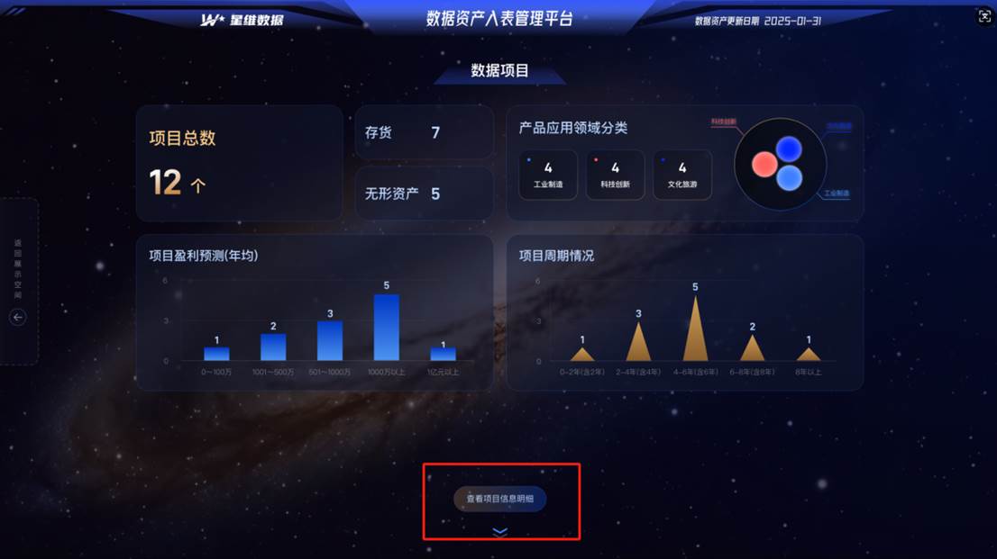 “领域分类”展示:所有数据资产项目在各应用领域中分布的数量。