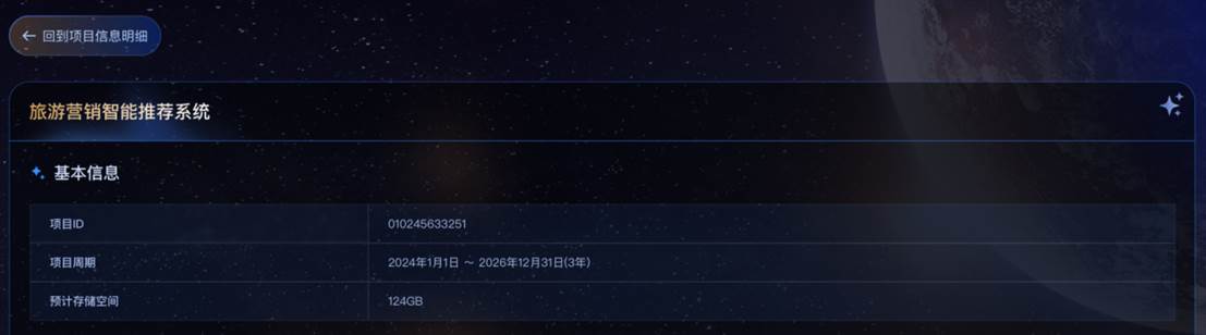 基本信息中展示了项目ID、项目周期、预计存储空间。