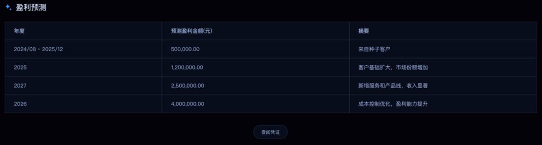 盈利预测展示了未来各个会计年度的预测盈利金额,以及相关摘要(包含如何实现盈利的相关表述)。