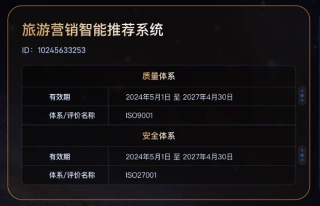 分别点击质量体系和安全提示下方的“更多”按钮,将展示企业质量/安全体系的认证详情(明细)。
