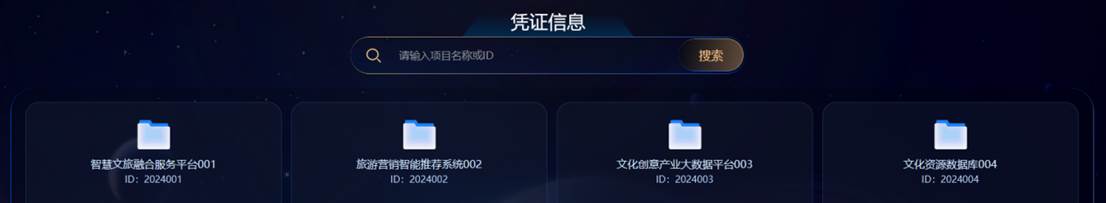 展示空间项目搜索栏通常出现在展示空间中有关项目明细的页面。如上图所示的“数据项目”、“凭证信息”等模块的项目明细中。