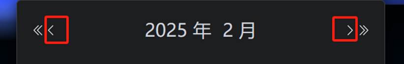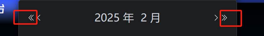 双箭头,可以变更年份。每点击一次,变更一年。右侧双箭头,点击一次增加一年;左侧双箭头,点击一次减少一年。